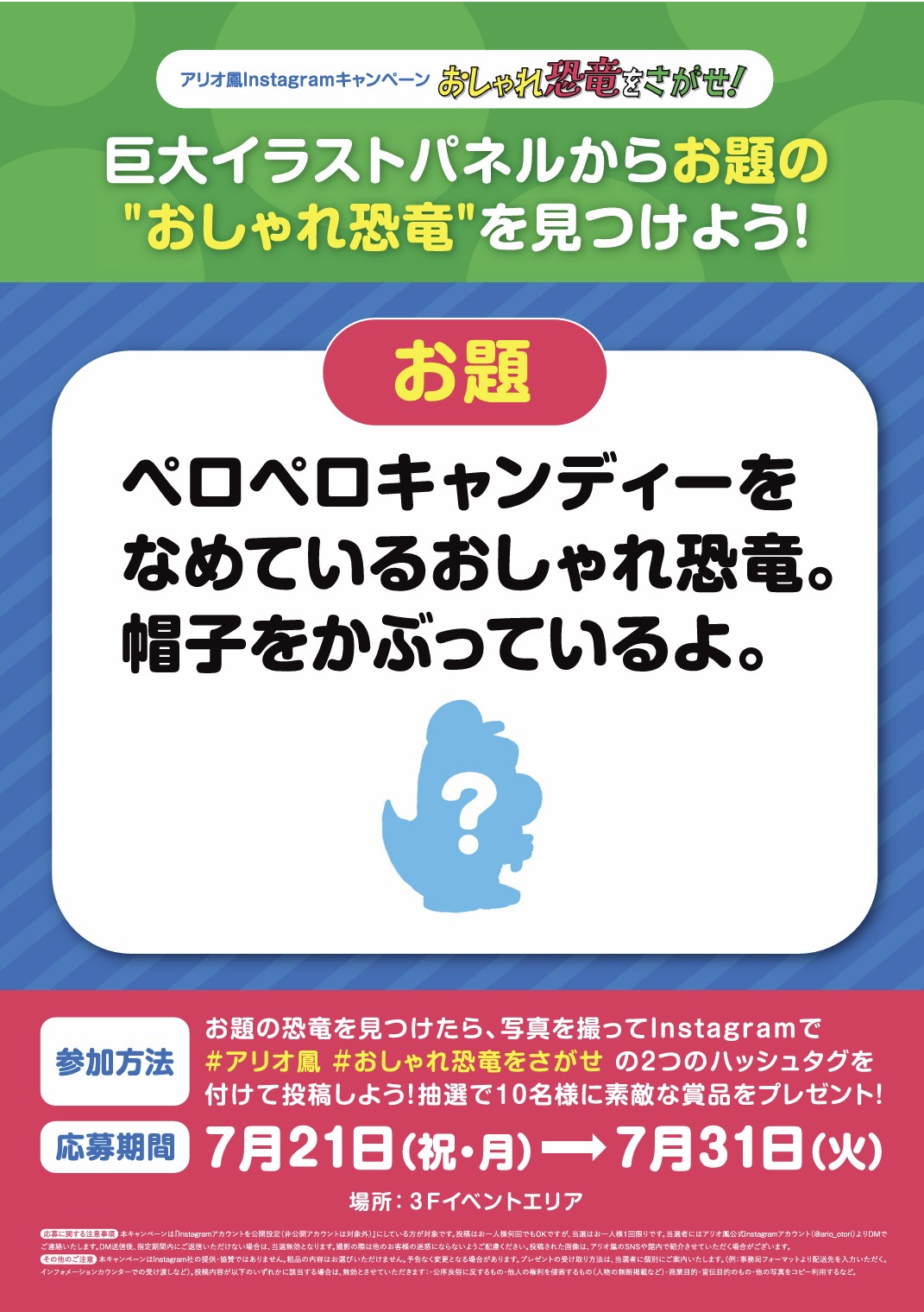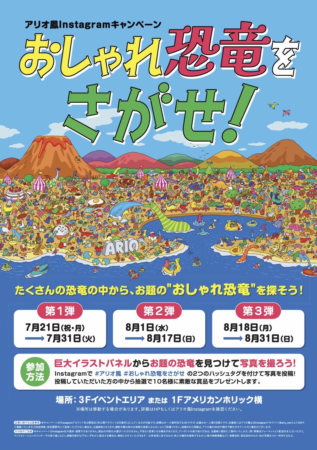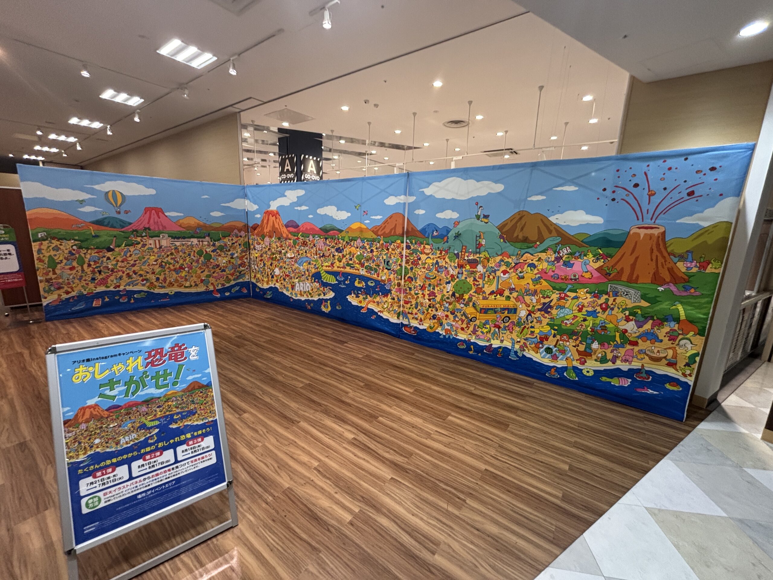 キャンペーンの企画・制作を担当させていただきました。 可愛いオシャレをした恐竜の中から、シルエットの恐竜を探していただき、 Instagramで投稿いただくキャンペーンです。 作品の世界観を圧巻のイラストをパートナークリエイターに担当いただき イラスト、デザインをまとめ上げました。 テナント様の入れ替え時の空き区画を覆うパーテーションを工夫したアイデアから 生まれた施策です。